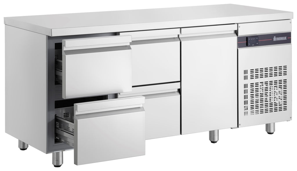 Udført i rustfrit stål AISI 304 18/10. Funktionstemperatur fra 0 - 10 grader. Bordets indre er designet med runde hjørner for at lette rengøring og højne hygiejne. Dørene lukker automatisk med mindre de åbnes mere end 90 grader. Pakningerne er magnetiske så lågerne er helt tætte. Fordamper er pulvermalet så man undgår utætheder og derved får længere levetid på bordet.